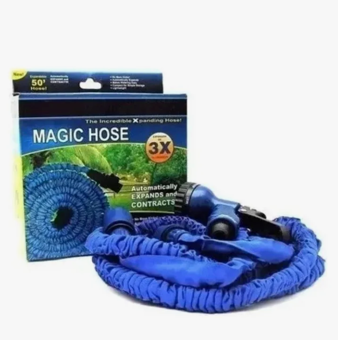 La manguera mágica expansible de 15 metros es ideal para el hogar, el jardín, el lavado del carro o terrazas. Se expande hasta 3 veces su tamaño con la presión del agua y se contrae automáticamente al cerrarla. Súper liviana, fácil de guardar y con boquilla multifunción incluida. 🚿🌿